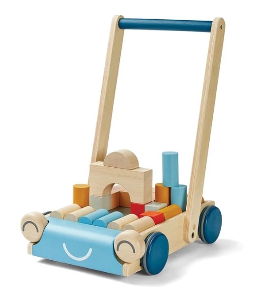 Cruise through early developmental stages with the PlanToys Baby Walker! This toy can help develop fine and gross motor skills while encouraging children to walk on their own two feet. The handle is adjustable to fit various heights. Plus, this Baby Walker comes with 13 colored and 11 natural wooden blocks so children can create and build things with their imagination.