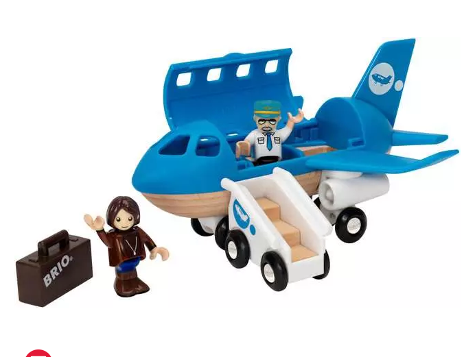 Ready for take-off! The three-seat airplane is now ready for boarding and new adventures lie ahead. Push the mobile stairs towards the plane and open up the top so you can seat the passengers and pilot. Ages 3+
