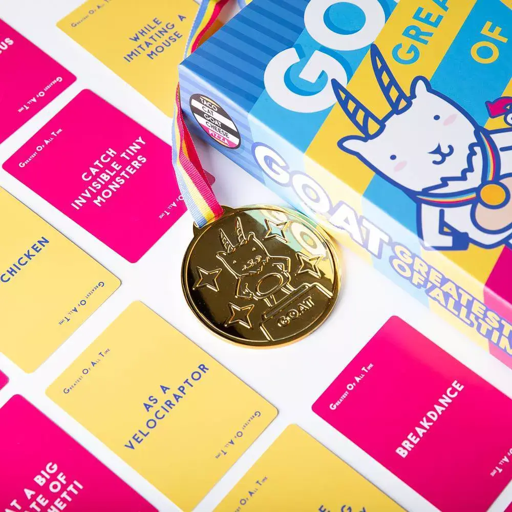 Looking for a game that gets everyone laughing, moving, and fully engaged? Meet the GOAT (Greatest of All Time) Card Game, a wildly fun twist on classic charades that blends creativity, improvisation, and unexpected challenges into one unforgettable experience. Designed for ages 7 and up, this easy-to-learn party game features prompt cards and hilarious modifiers that keep every round fresh and unpredictable with a wearable medal for the winner. Whether you’re planning a family game night, a teen hangout, or an adults-only party, GOAT brings the energy, laughs, and shared moments that make game nights memorable. Perfect for groups of 4 to 8 players, it’s ideal for parties, family reunions, classroom activities, or team-building sessions. Compact and portable, it also makes a great gift or travel game. GOAT is more than just a game; it’s the centerpiece of any gathering that needs a boost of laughter and connection. With broad appeal across generations, it’s one of the best new family card games to keep everyone entertained.