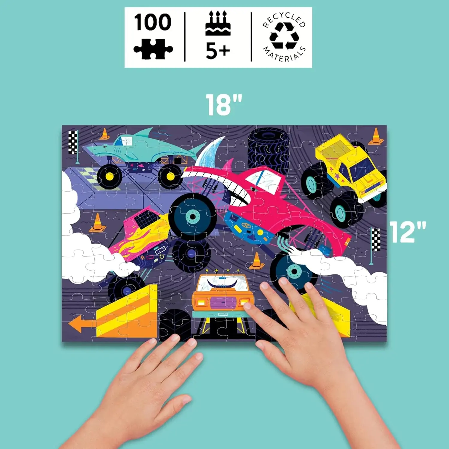 • Puzzle: 18 x 12”, 46 x 30.5 cm