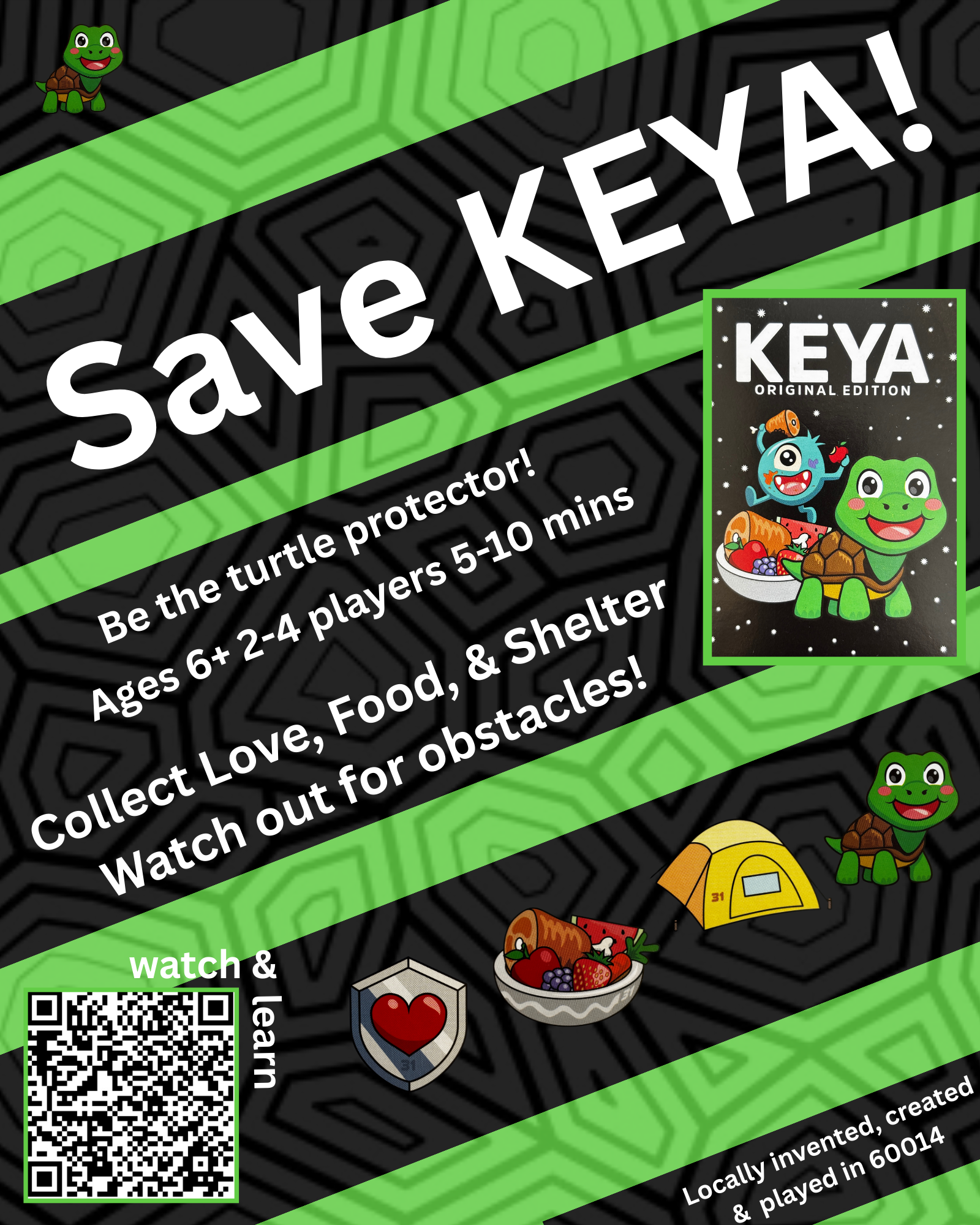 Collect Love, shelter, & food to save KEYA the turtle and win the game.