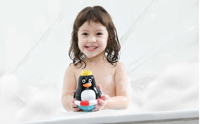 Place the funny penguin in the water so it floats, wobbling from side to side. Pour water into the crown, and it dunks under the water. And then, suddenly, water shoots through the beak and the penguin pops back up for more!