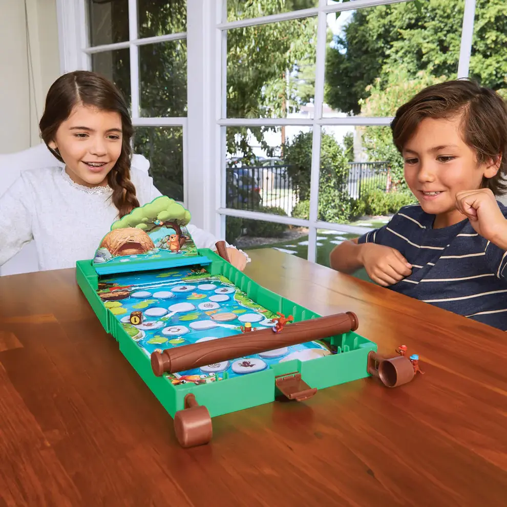 The new Run Beaver Run game is full of excitement and anticipation with each roll! For 2 to 4 players, age 5 and up. Includes 4 beaver playing pieces, 1 fold-up gameboard case for easy, on-the-go play, 1 die, 1 log, 1 log release lever and instructions. No batteries required.