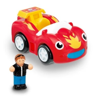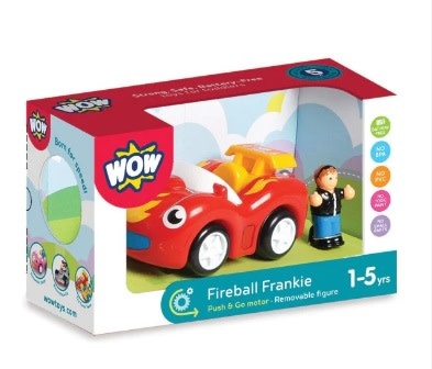 Fireball Frankie driver figure fits into the driver’s seat and his motorised Push & Go sports car engine takes him straight over the racing finish line. Complete with rear magnetic hook, this fun and exciting sports car is also compatible with any WOW Toys trailer.