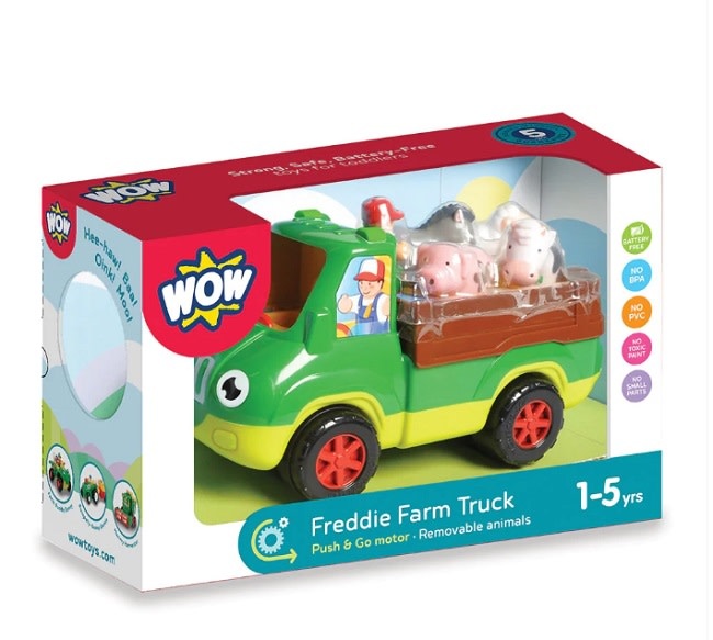 Help Freddie haul his cow, sheep, donkey and pig with this push n go farm truck.